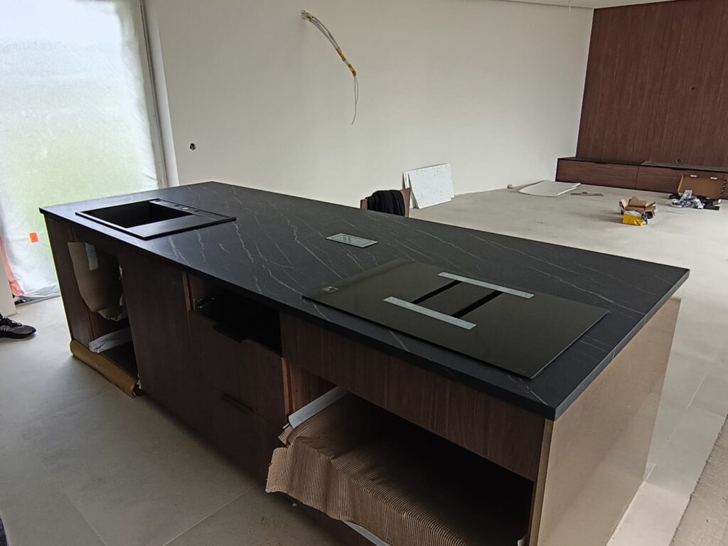 Bei unserem Kunden haben wir Arbeitsplatten aus Feinsteinzeug Franko Saint Laurent Delux montiert. Dieses Material zeichnet sich durch außergewöhnliche Eleganz und Langlebigkeit aus und fügt sich perfekt in moderne Wohnräume ein. Die Arbeitsplatten überzeugen nicht nur durch ihr zeitloses, von Naturstein inspiriertes Design, sondern auch durch ihre hohe Widerstandsfähigkeit gegen mechanische Belastungen, Feuchtigkeit und hohe Temperaturen. So erhält die Küche sowohl einen repräsentativen Charakter als auch eine praktische Lösung für viele Jahre.
