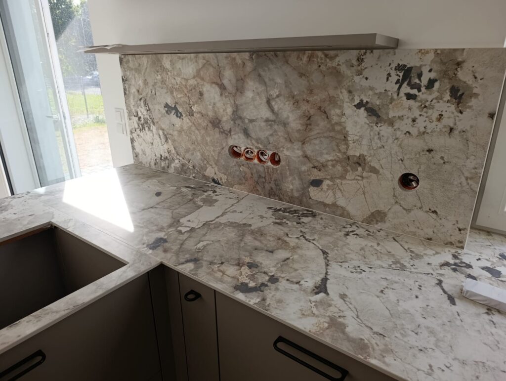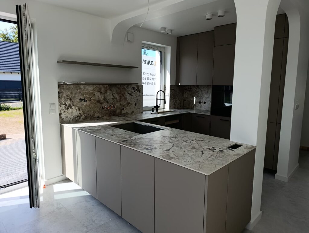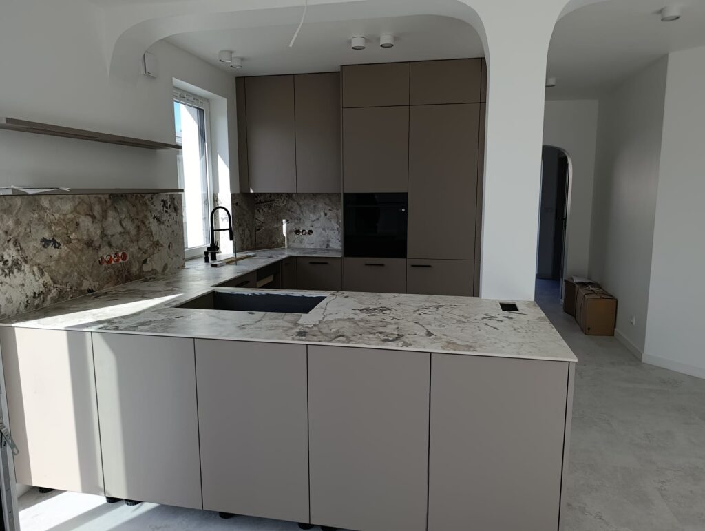 Bei unserem Kunden haben wir Arbeitsplatten aus Keramik Florim Tundra installiert. Dieses Material zeichnet sich durch ein elegantes, modernes Erscheinungsbild sowie eine außergewöhnliche Beständigkeit aus, was es zu einer idealen Wahl für stark beanspruchte Küchenbereiche macht. Durch die präzise Anpassung und sorgfältige Montage konnten wir ein ästhetisches und funktionales Endergebnis erzielen, das den Erwartungen unseres Kunden in vollem Umfang entspricht.