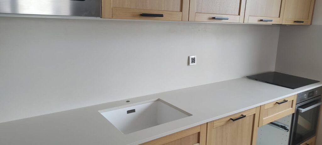 Bei unserem Kunden haben wir Küchenarbeitsplatten aus Dekton Aeris fachgerecht montiert. Dieses Material zeichnet sich durch eine hohe Widerstandsfähigkeit gegen Kratzer, Flecken und hohe Temperaturen aus und ist daher besonders praktisch im täglichen Gebrauch. Durch die präzise Anpassung der Arbeitsplatten entstand eine ästhetische und moderne Arbeitsfläche, die Eleganz mit Langlebigkeit verbindet.