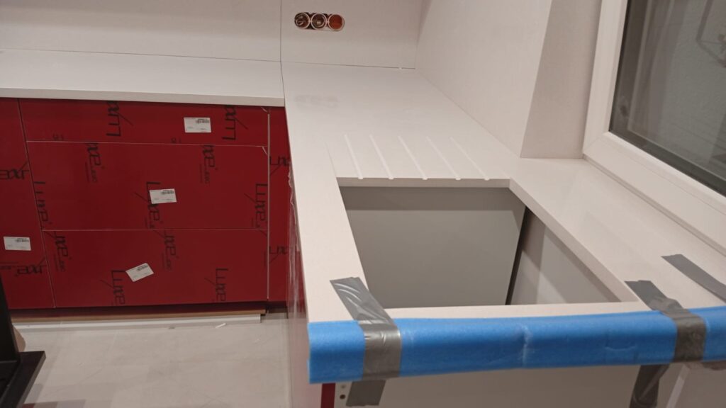 Bei unserem Kunden haben wir die Montage von Küchenarbeitsplatten aus dem Konglomerat Silestone Blanco Norte erfolgreich umgesetzt. Dieses Material zeichnet sich durch seine hohe Beständigkeit, Kratzfestigkeit und Pflegeleichtigkeit aus und ist daher eine ausgezeichnete Wahl für den täglichen Gebrauch in der Küche. Durch die präzise Verarbeitung und exakte Anpassung der Elemente konnten wir ein elegantes und harmonisches Endergebnis erzielen, das sich perfekt in das Raumkonzept einfügt.
