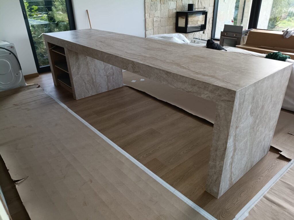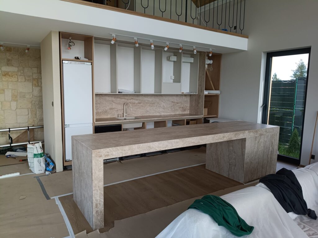 Bei unserem Kunden haben wir Küchenarbeitsplatten aus Laminam Franko Onyce Argan installiert. Dieses Material besticht durch seine außergewöhnliche Eleganz, Langlebigkeit sowie Beständigkeit gegen Kratzer und hohe Temperaturen. Dank präziser Montage und sorgfältiger Verarbeitung entstand eine moderne und funktionale Küchenumgebung, die Ästhetik mit hoher Gebrauchstauglichkeit verbindet.