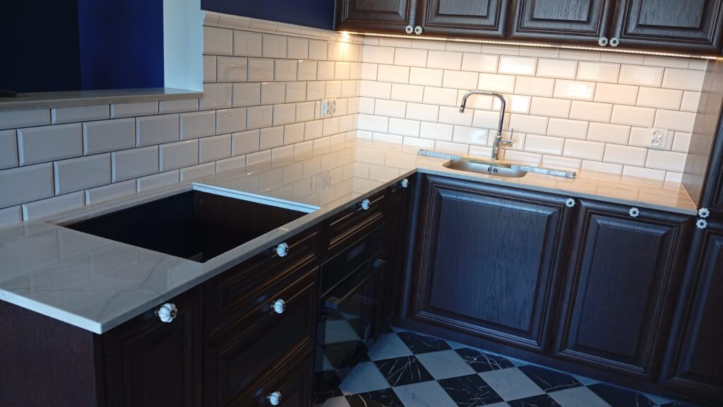 Bei unserem Kunden haben wir die Montage von Küchenarbeitsplatten aus Quarzit Sublime erfolgreich umgesetzt. Dieses Material zeichnet sich durch außergewöhnliche Eleganz, Langlebigkeit und hohe Widerstandsfähigkeit im täglichen Gebrauch aus. Die präzise Anpassung und sorgfältige Verarbeitung garantieren ein ästhetisches Ergebnis, das den modernen Charakter der Küche unterstreicht und höchsten Qualitätsansprüchen gerecht wird.