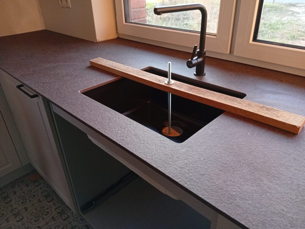 Für unseren Kunden haben wir die Montage von Küchenarbeitsplatten aus Laminam In-Side Porfido Marrone Fiammato durchgeführt.
