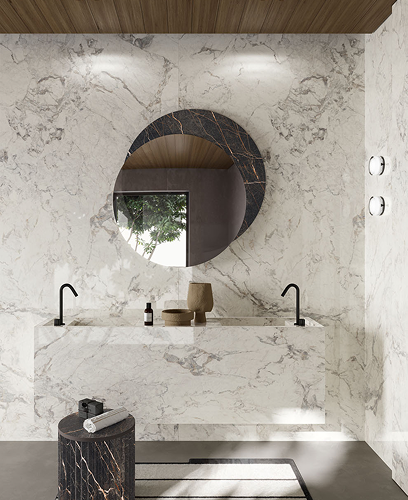 Großformatige Keramik – extrem langlebig und atemberaubend schön im modernen Badezimmer