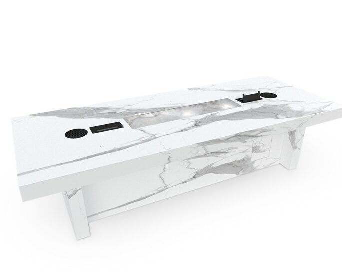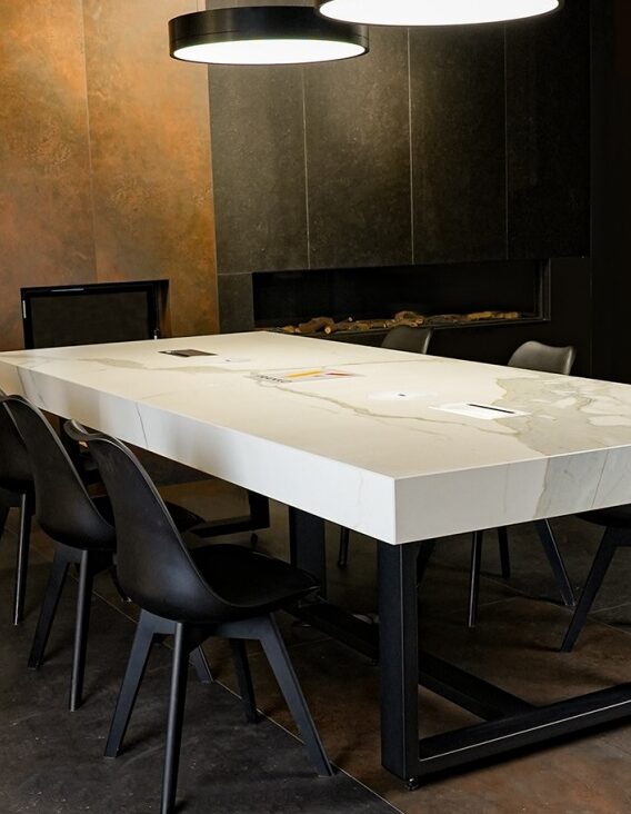 Eine reichhaltige Sammlung von Konferenztischen, die die schönen Farben von Keramik mit innovativen technologischen Lösungen erfolgreich kombiniert. Unser Team ist bereit, die Erwartungen der anspruchsvollsten Kunden zu erfüllen. Unsere Konferenztische werden nach Maß gefertigt, wodurch sie sich perfekt in das Interieur eines Büros, Hotels, Amtes oder einer Anwaltskanzlei einfügen.