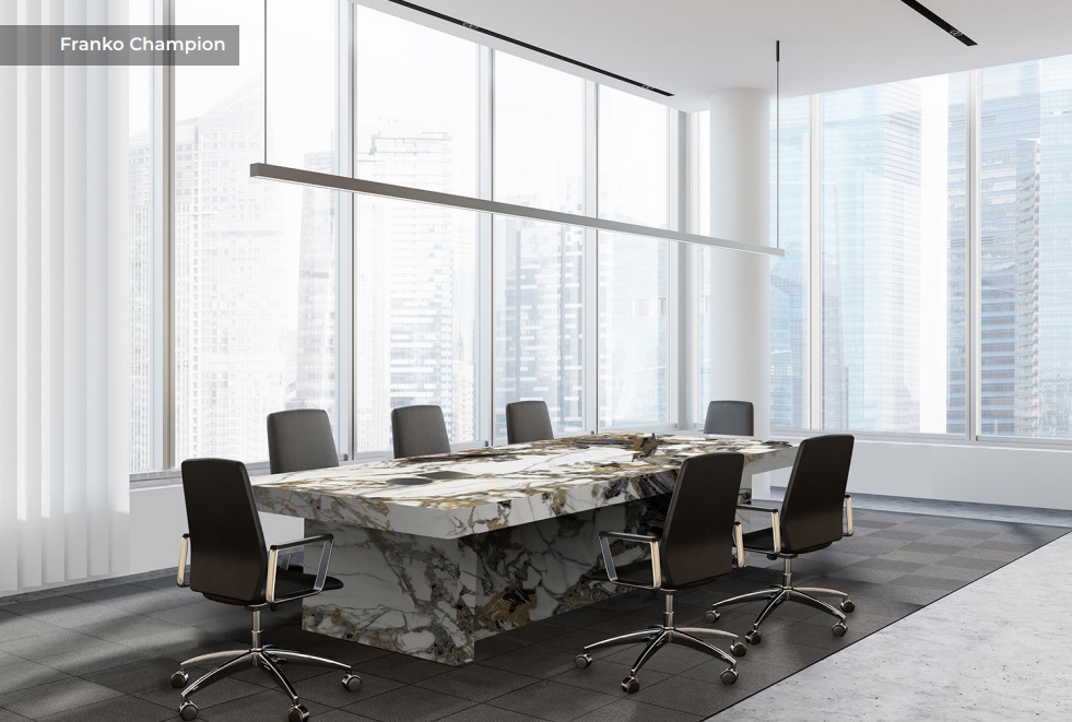Wir bieten einen exklusiven Konferenztisch FRANKO CHAMPION mit einer stabilen, mit Keramik beschichteten Stahlkonstruktion an. Ausgewählter Stahl von höchster Qualität. Die Tischbeine sind komplett mit Sinter überzogen – sie verleihen dem Tisch ein einzigartiges, repräsentatives Aussehen. Die Tischplatte sowie alle Wände, aus denen die Struktur besteht, bestehen aus Keramik mit höchster Beständigkeit gegen intensiver Nutzung, einschließlich Kratzern und Abrieb, sowie völliger Beständigkeit gegen Flecken von Kaffee, Tee, Tinte, Wein, Säfte, Chemikalien usw. Die Tischplatte ist vollständig UV-beständig, zeichnet sich durch unbegrenzte Farbbeständigkeit aus und ist beständig gegen sehr intensive Nutzung.