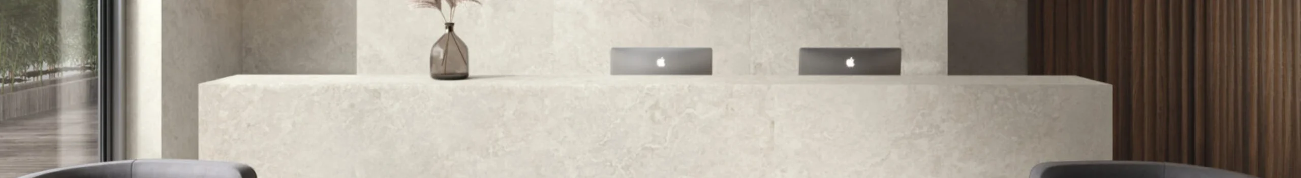 Ob Empfangstheken, Wandverkleidungen, Waschtische oder maßgefertigte Möbeloberflächen: Keramik bietet klare Linien, zeitlose Ästhetik und eine robuste Oberfläche, die den Anforderungen moderner Büro- und Gewerberäume dauerhaft gerecht wird.