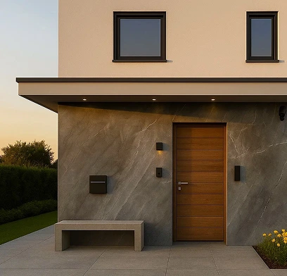 Hausfassaden aus Keramik verbinden zeitloses Design mit außergewöhnlicher Widerstandsfähigkeit. Großformatige Keramikplatten schaffen klare, elegante Flächen und verleihen Gebäuden eine hochwertige, moderne Ausstrahlung. Sie eignen sich ideal für Wohnhäuser, Mehrfamilienhäuser sowie repräsentative Gewerbeobjekte.