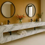 Doppel-Waschtisch nach Maß mit integriertem Waschbecken mit Ablage aus Keramik Naturstein Feinsteinzeug Franko Waterstone Elvoria