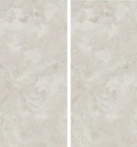 AB Aral Pearl-Großkeramikplatten ist mit „Book Match“-Effekt erhältlich. Dabei werden nebeneinanderliegende Paneele so zusammengesetzt, dass ihre Muster ein Spiegelbild ergeben (ähnlich einem offenen Buch). Dadurch entsteht ein Eindruck von Kontinuität, Ordnung und Symmetrie und der Innenraum gewinnt an Harmonie und Eleganz.