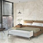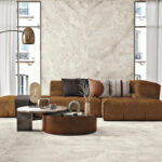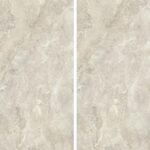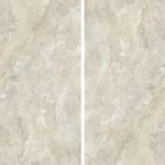 AB Aura Ivory-Großkeramikplatten ist mit „Book Match“-Effekt erhältlich. Dabei werden nebeneinanderliegende Paneele so zusammengesetzt, dass ihre Muster ein Spiegelbild ergeben (ähnlich einem offenen Buch). Dadurch entsteht ein Eindruck von Kontinuität, Ordnung und Symmetrie und der Innenraum gewinnt an Harmonie und Eleganz.