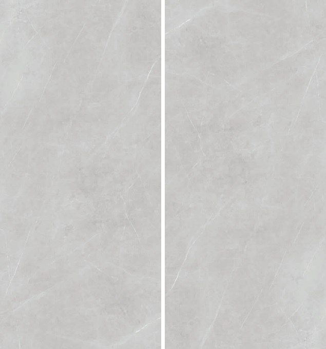 AB Tessino Smoke Rauchquarzsinter ist mit „Book Match“-Effekt erhältlich. Dabei werden nebeneinanderliegende Paneele so zusammengesetzt, dass ihre Muster ein Spiegelbild ergeben (ähnlich einem offenen Buch). Dadurch entsteht ein Eindruck von Kontinuität, Ordnung und Symmetrie und der Innenraum gewinnt an Harmonie und Eleganz.