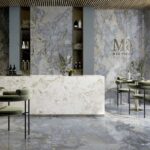Ava Gemstone Ocean Großkeramikplatten zeichnet sich durch seinen „Book Match“-Effekt aus. Dabei werden nebeneinander liegende Paneele so angebracht, dass ihre Muster ein Spiegelbild ergeben und an ein offenes Buch erinnern. Dadurch entsteht beim Kunden ein Eindruck von Kontinuität, Ordnung und Symmetrie und der Innenraum gewinnt an Harmonie und Eleganz.