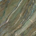 Franko Mystic Green Großkeramikplatten zeichnet sich durch seinen „Book Match“-Effekt aus. Dabei werden nebeneinander liegende Paneele so angebracht, dass ihre Muster ein Spiegelbild ergeben und an ein offenes Buch erinnern. Dadurch entsteht beim Kunden ein Eindruck von Kontinuität, Ordnung und Symmetrie und der Innenraum gewinnt an Harmonie und Eleganz.