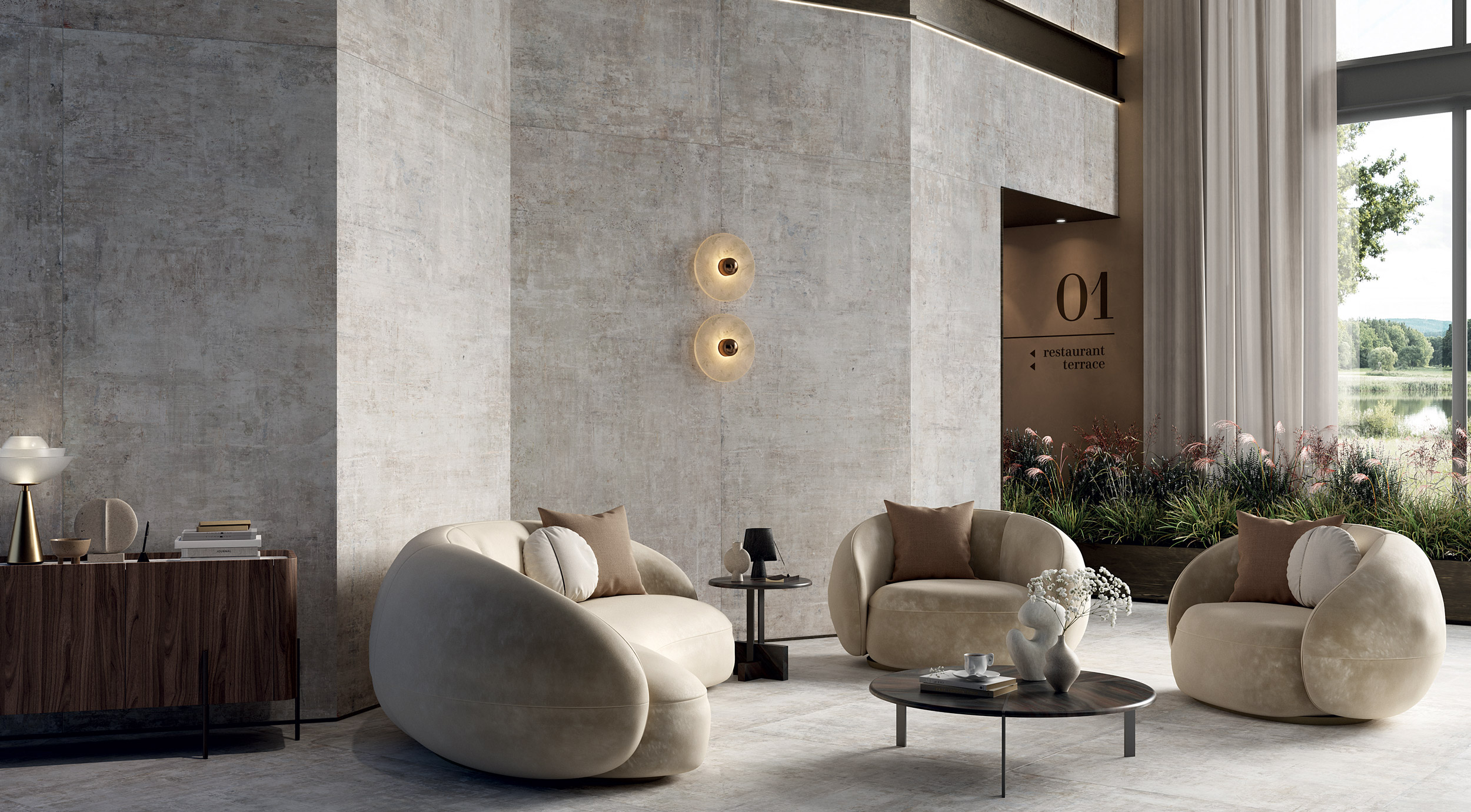 Dekorauswahl aus der Kollektion großformatiger Keramikplatten