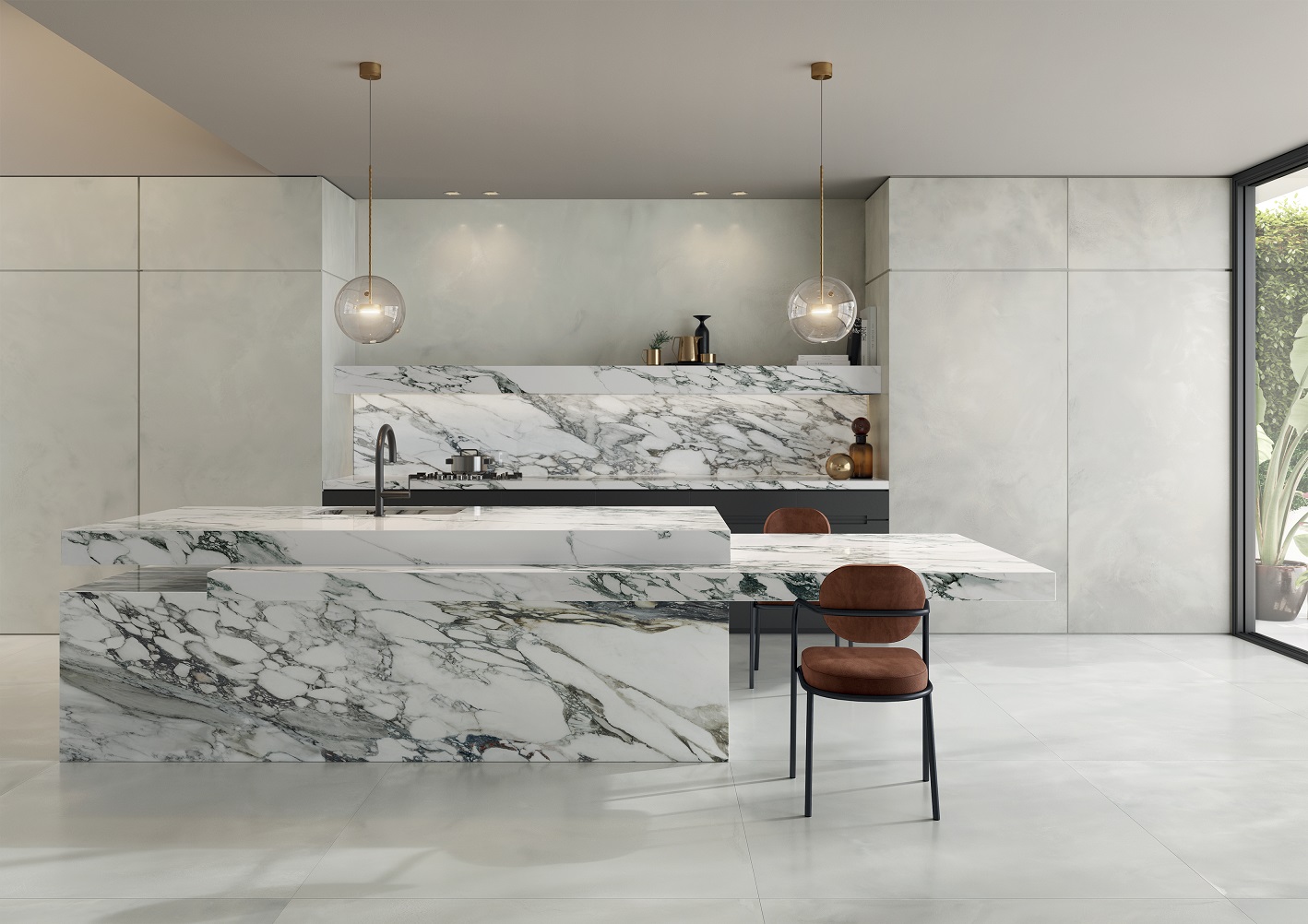 Großkeramikplatten 320 x 160 cm Franko Arabescato Magnifico für Arbeitsplatte und Verkleidung