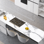 Großkeramikplatten zeichnet sich durch den „Book Match“-Effekt aus. Dabei werden nebeneinanderliegende Paneele so zusammengesetzt, dass ihre Muster ein Spiegelbild ergeben und an ein offenes Buch erinnern. Dadurch entsteht ein Eindruck von Kontinuität, Ordnung und Symmetrie, der dem Innenraum Harmonie und Eleganz verleiht.