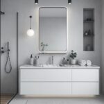 Die keramische Rückwand schützt die Wandfläche effektiv vor Wasser und Schmutz und sorgt gleichzeitig für ein stimmiges, elegantes Gesamtbild. So bleibt Ihr Badezimmer nicht nur stilvoll, sondern auch besonders pflegeleicht und hygienisch.