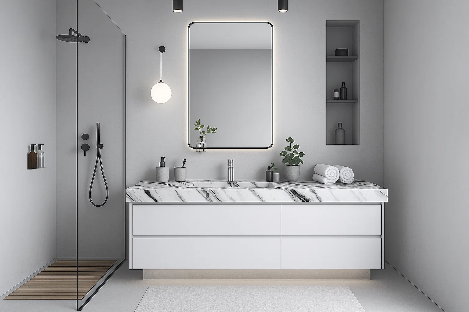 Besonders wirkungsvoll kommen Keramikplatten im Bereich der Dusche und der Badewanne zur Geltung. Hier lassen sich funktionale Details wie Nischen oder Ablagen für Kosmetikprodukte elegant integrieren. So entsteht ein durchdachtes Badezimmerkonzept, das Design, Funktionalität und Komfort perfekt miteinander verbindet.