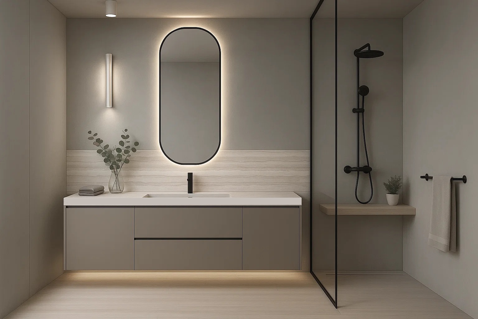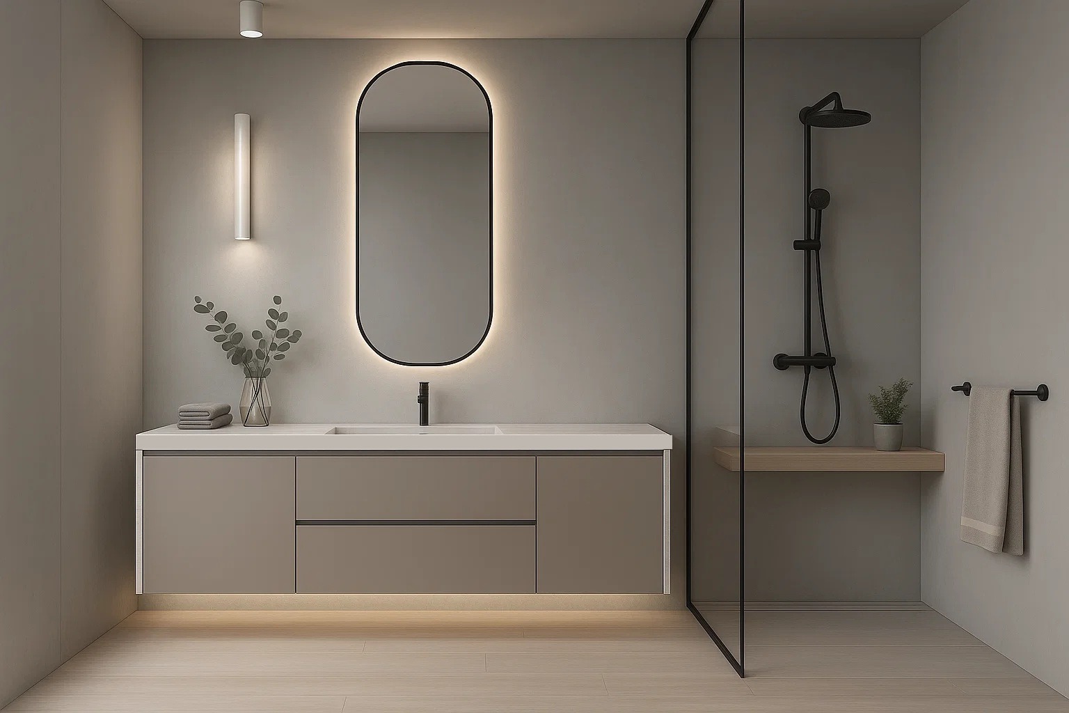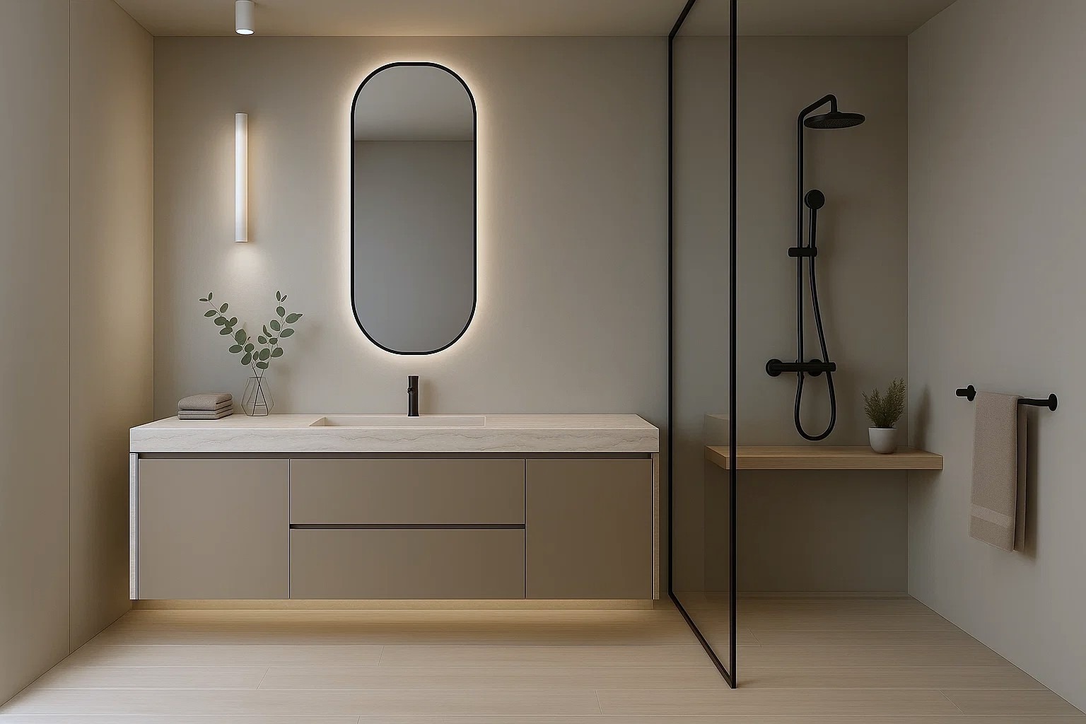 Das Badezimmer Ihrer Träume besteht aus mehr als nur einer hochwertigen Waschtischlösung. Großformatige Keramikplatten oder Naturstein an Wänden und Böden schaffen ein harmonisches, modernes Gesamtbild und verleihen dem Raum eine besondere Eleganz. Durch den Einsatz großformatiger Platten entsteht nahezu eine fugenlose Oberfläche, die nicht nur optisch überzeugt, sondern auch besonders pflegeleicht ist.