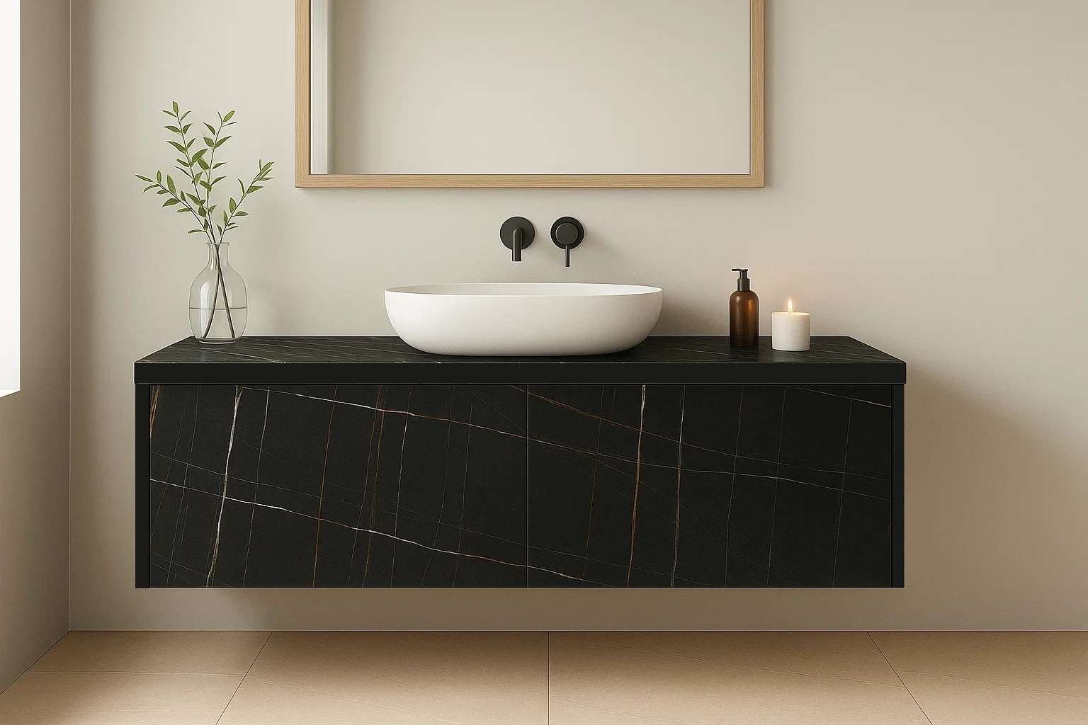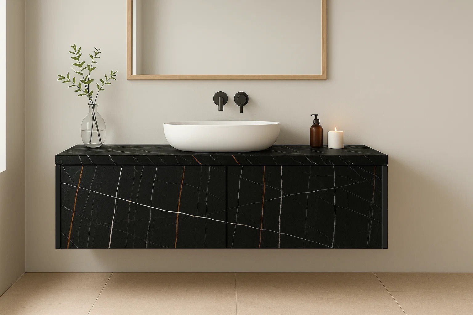 Wir bieten eine maßgefertigte Waschtischlösung mit Unterschrank – Franko Vastoria – bestehend aus einer hochwertigen Waschtischplatte aus Keramik (Feinsteinzeug) sowie einem individuell gefertigten Unterschrank. Der Unterschrank kann wahlweise aus Holz oder aus Keramik ausgeführt werden. Beide Elemente werden exakt nach Ihren Vorgaben und Maßen geplant und bilden eine harmonisch abgestimmte Einheit. Die Lösung ist für die Montage eines kundenseitig bereitgestellten Aufsatz- oder Einbauwaschbeckens vorbereitet und verleiht dem Badezimmer eine moderne, elegante und hochwertige Ausstrahlung.