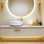 Das Badezimmer Ihrer Träume ist nicht nur eine schöne Waschtischplatte, sondern auch Wand- und Bodenverkleidungen aus großformatigen Keramikplatten oder Naturstein. Der Einsatz von großformatigen Keramikplatten sorgt dafür, dass das Bad nahezu fugenlos und sehr pflegeleicht ist. Besonders schön wirken die Keramikplatten im Bereich der Dusche und der Badewanne. In der Dusche plant man häufig Nischen oder kleine Ablagen für Kosmetikprodukte. Das gesamte Badezimmer sieht einfach fantastisch aus.