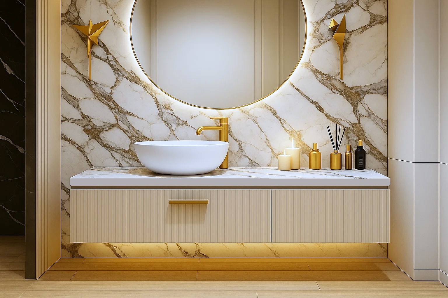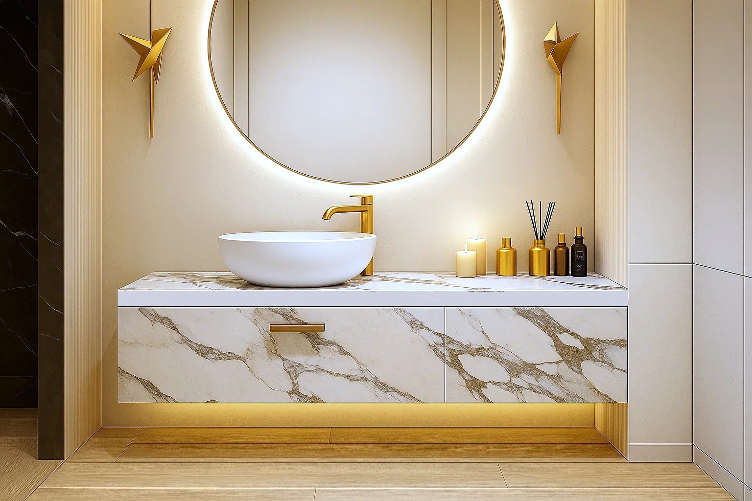 Unsere Arbeitsplatten können individuell an unterschiedliche Einbauarten von Waschbecken angepasst werden. So erhalten Sie stets eine Lösung, die perfekt zu Ihrem Badezimmerkonzept passt.