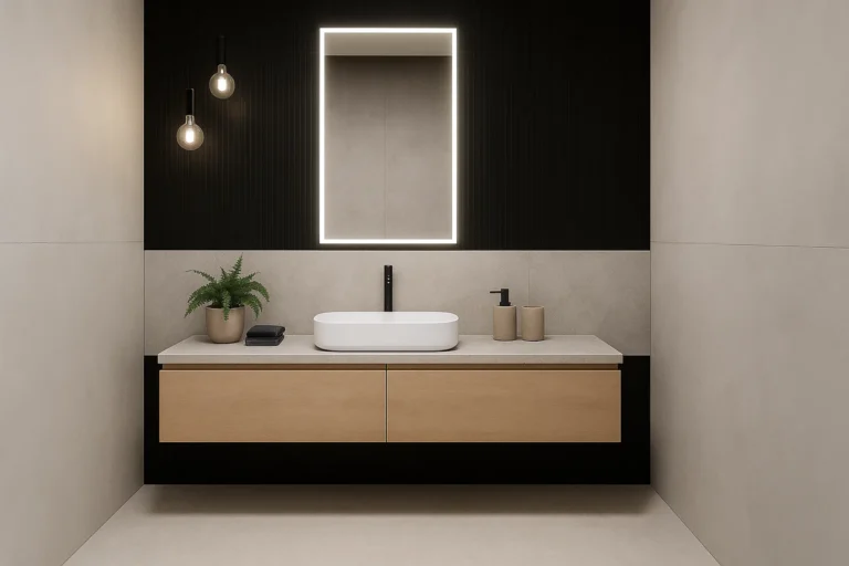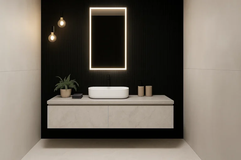 Der Bereich rund um den Waschtisch ist im Badezimmer besonders anfällig für Verschmutzungen. Gerne ergänzen wir Ihren Waschtisch um eine passgenaue Rückwand (Spritzschutz) aus einer großformatigen Keramikplatte. So bleibt Ihr Badezimmer nicht nur stilvoll, sondern auch besonders pflegeleicht und hygienisch.