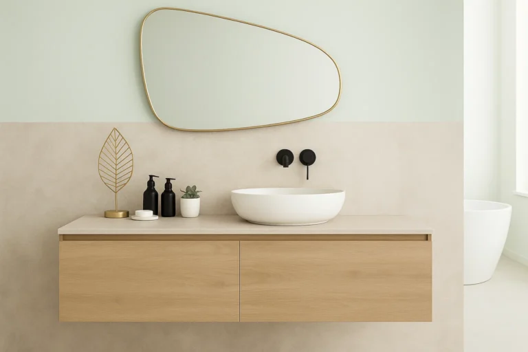 Der Bereich rund um den Waschtisch ist im Badezimmer besonders anfällig für Verschmutzungen. Gerne ergänzen wir Ihren Waschtisch um eine passgenaue Rückwand (Spritzschutz) aus einer großformatigen Keramikplatte. So bleibt Ihr Badezimmer nicht nur stilvoll, sondern auch besonders pflegeleicht und hygienisch.