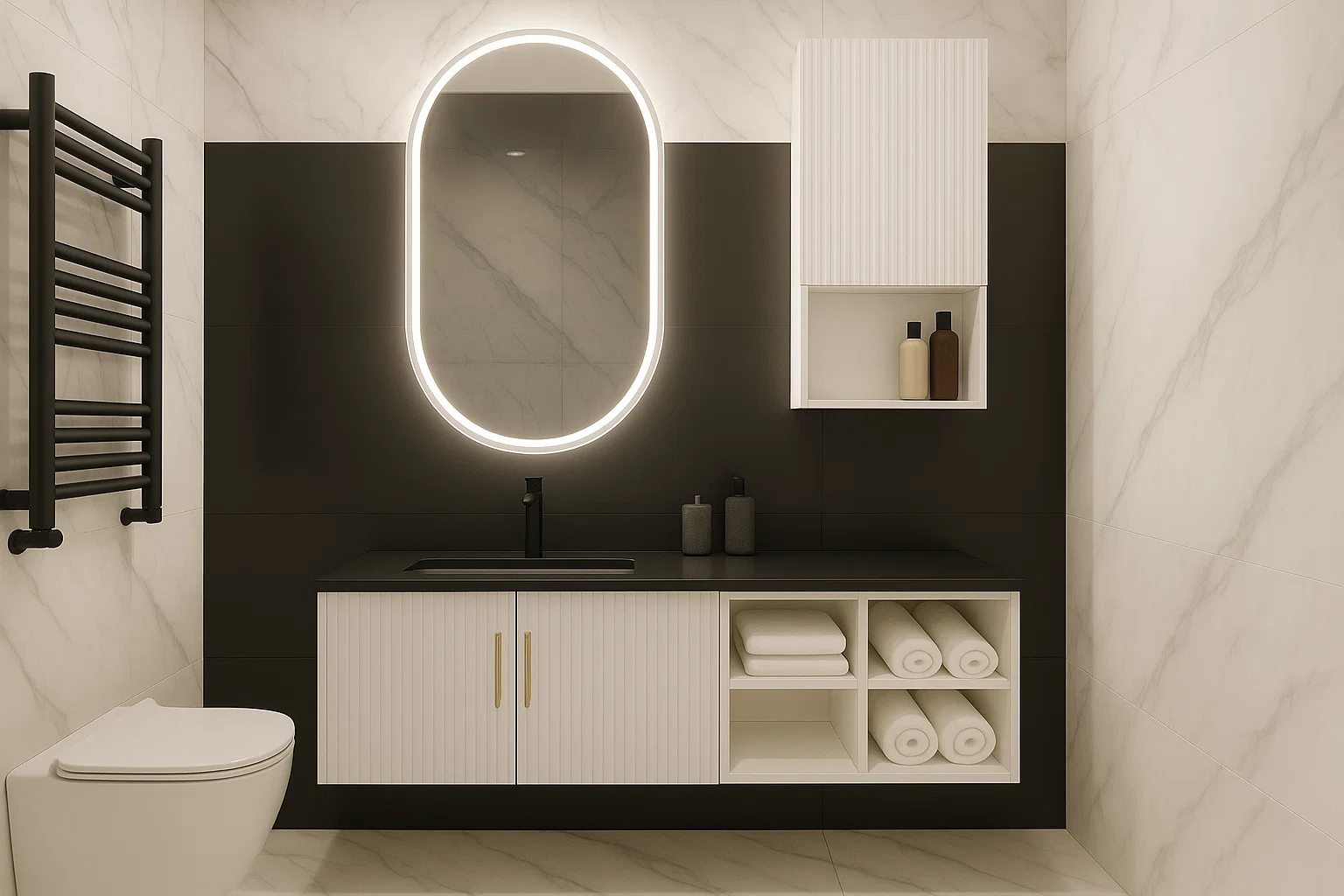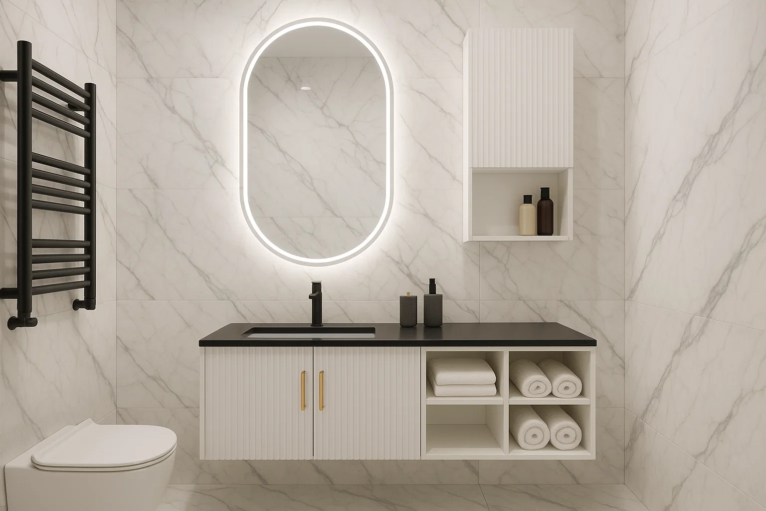 Der Bereich rund um den Waschtisch ist im Badezimmer besonders anfällig für Verschmutzungen. Gerne ergänzen wir Ihren Waschtisch um eine passgenaue Rückwand (Spritzschutz) aus einer großformatigen Keramikplatte. So bleibt Ihr Badezimmer nicht nur stilvoll, sondern auch besonders pflegeleicht und hygienisch.