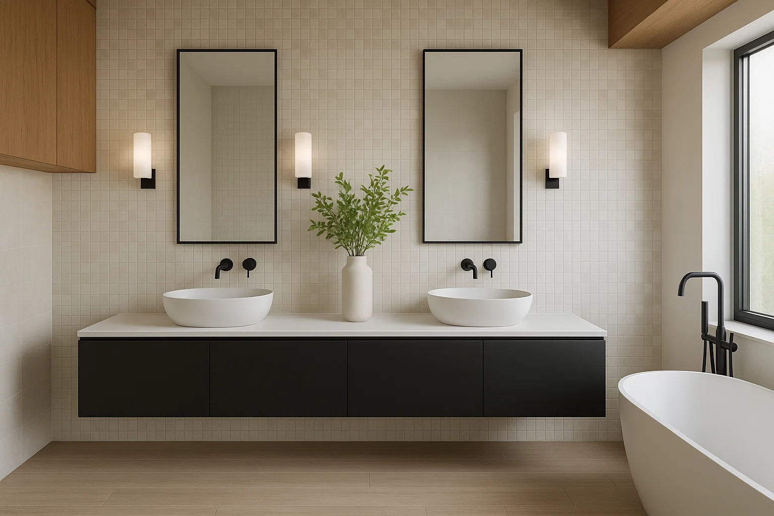 Das Badezimmer Ihrer Träume ist nicht nur eine schöne Waschtischplatte, sondern auch Wand- und Bodenverkleidungen aus großformatigen Keramikplatten oder Naturstein. Der Einsatz von großformatigen Keramikplatten sorgt dafür, dass das Bad nahezu fugenlos und sehr pflegeleicht ist. Besonders schön wirken die Keramikplatten im Bereich der Dusche und der Badewanne. In der Dusche plant man häufig Nischen oder kleine Ablagen für Kosmetikprodukte. Das gesamte Badezimmer sieht einfach fantastisch aus.