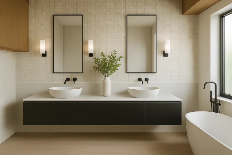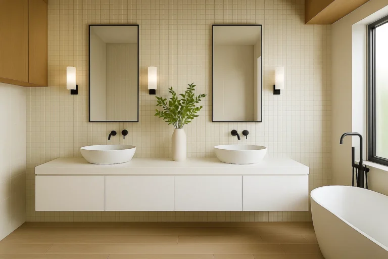 Der Bereich rund um den Waschtisch ist im Badezimmer besonders anfällig für Verschmutzungen. Gerne ergänzen wir Ihren Waschtisch um eine passgenaue Rückwand (Spritzschutz) aus einer großformatigen Keramikplatte. So bleibt Ihr Badezimmer nicht nur stilvoll, sondern auch besonders pflegeleicht und hygienisch.