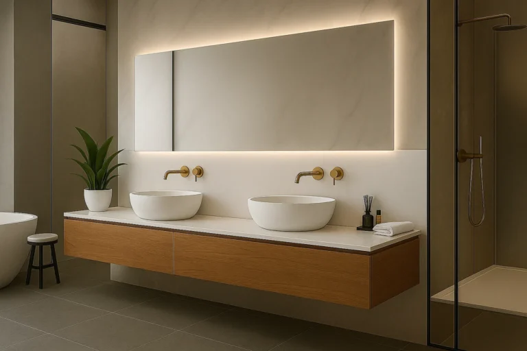 Unsere Arbeitsplatten können individuell an unterschiedliche Einbauarten von Waschbecken angepasst werden. So erhalten Sie stets eine Lösung, die perfekt zu Ihrem Badezimmerkonzept passt.