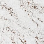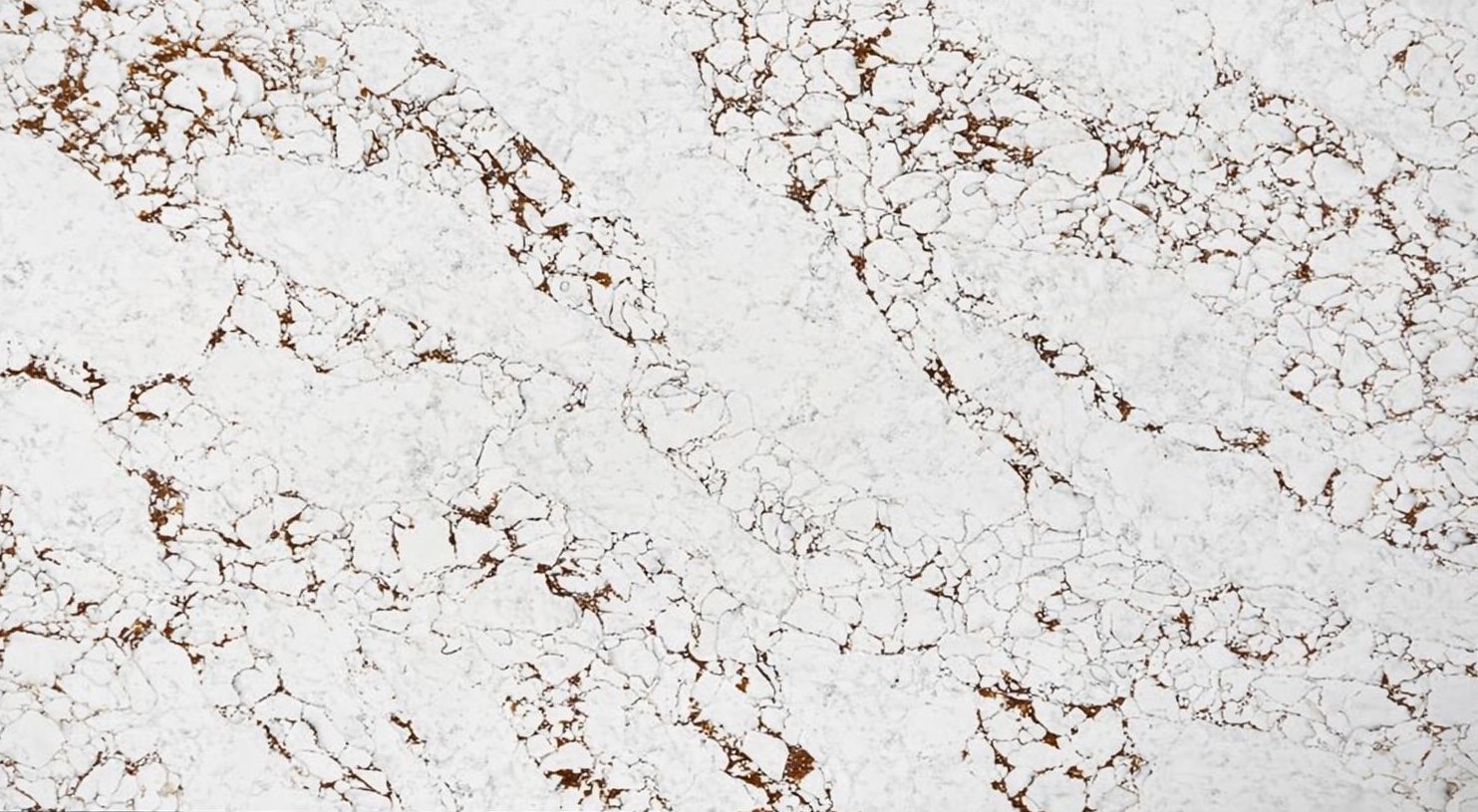 Arabescato Amber aus der F-Quartz Kollektion ist ein modernes Quarz-Konglomerate (Quarzgranit), inspiriert von den natürlichen Marmoren der Arabescato-Familie. Es zeichnet sich durch eine ausdrucksstarke und warme Farbgebung aus. Das Material verfügt über einen hellen, creme-weißen Hintergrund, auf dem sich ein dynamisches Netzwerk aus bernsteinfarbenen, kupferfarbenen und rostigen Adern erstreckt. Diese Adern bilden unregelmäßige Strukturen, die an gespaltenen Fels oder mineralische Einschlüsse erinnern, wodurch die Oberfläche Tiefe und natürlichen Charakter erhält.