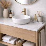 Die helle, cremeweiße Oberfläche des Calacatta Luxoria-Komposits wird durch ein zartes, natürliches Muster aus feinen Adern und sanften Tonübergängen bereichert. Das Muster vermittelt Leichtigkeit und Harmonie, sodass das Material sowohl in modernen, minimalistischen Räumen als auch in eleganten, zeitlosen Interieurs hervorragend zur Geltung kommt.