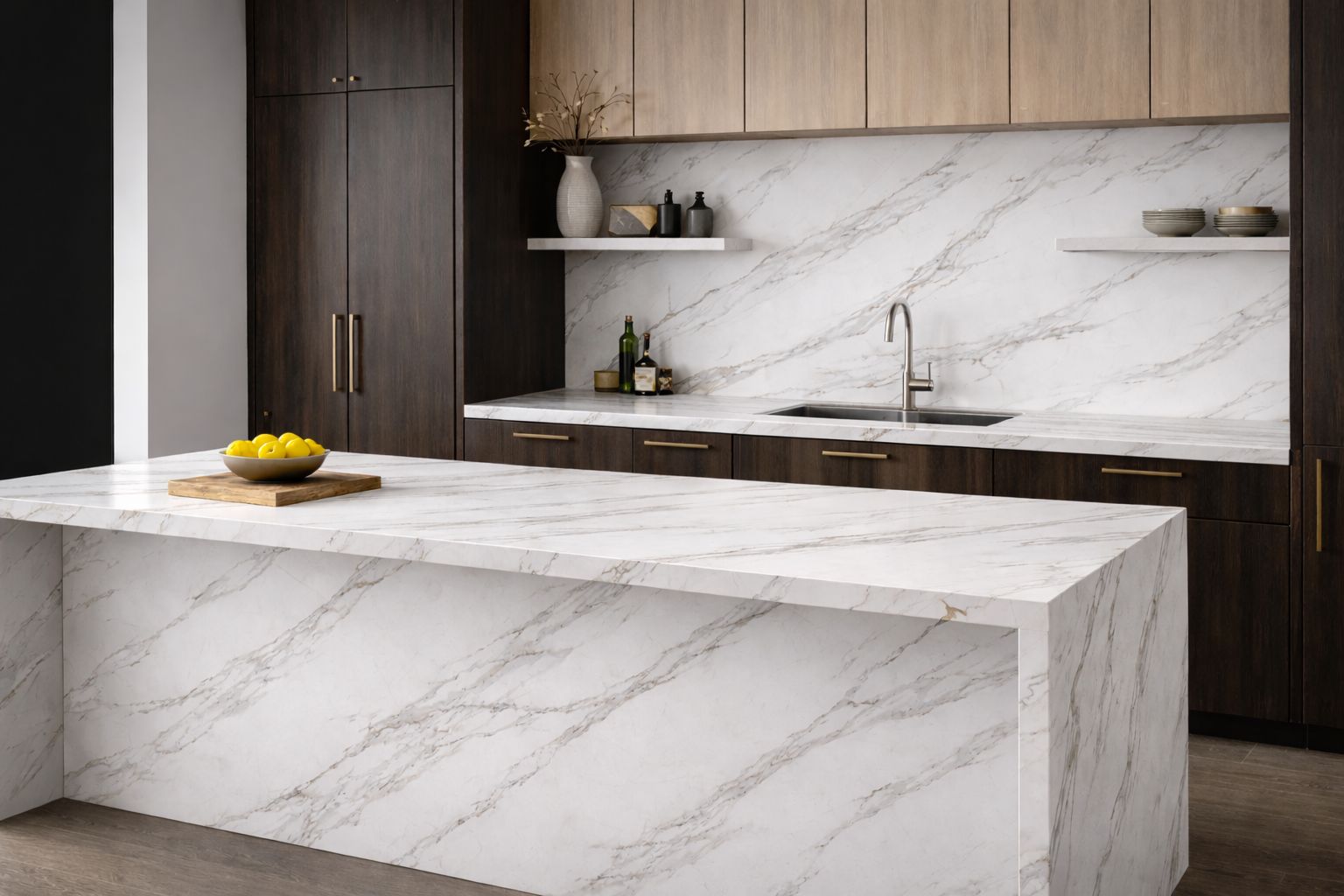 Das markanteste Merkmal des Calacatta Mona Lisa Konglomerate ist seine edle, realistisch wirkende Maserung. Sie verleiht der Oberfläche Tiefe, natürliche Leichtigkeit und macht sie zu einem echten Blickfang im Raum.