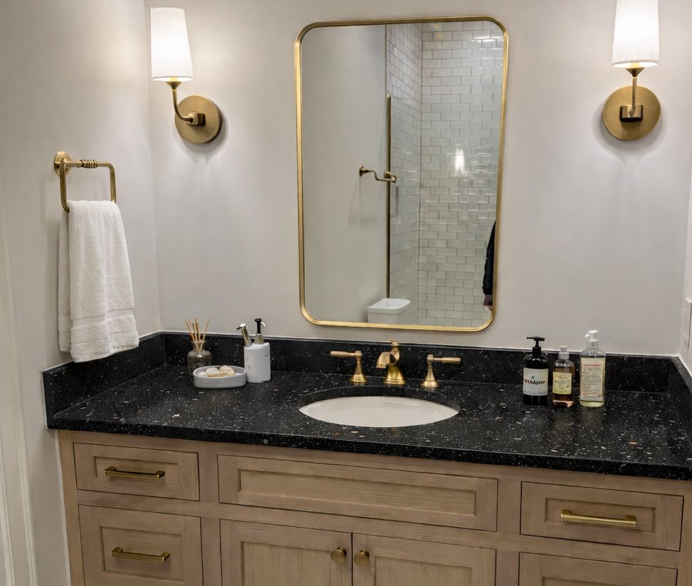 Quarz-Konglomerate F-Quartz empfehlen wir als Material für langlebige Küchen- und Badarbeitsplatten sowohl in Wohnhäusern als auch in gewerblichen Objekten. Quarz-Konglomerate eignet sich außerdem hervorragend für Innenfensterbänke sowie für Innentreppen (Stufen, Setzstufen und Podeste).