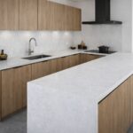 F-Quartz Victoria harmoniert hervorragend mit Holz in warmen Tönen, hellen Küchenfronten, Schwarz und Anthrazit sowie mit Elementen in Gold, Messing oder gebürstetem Stahl.