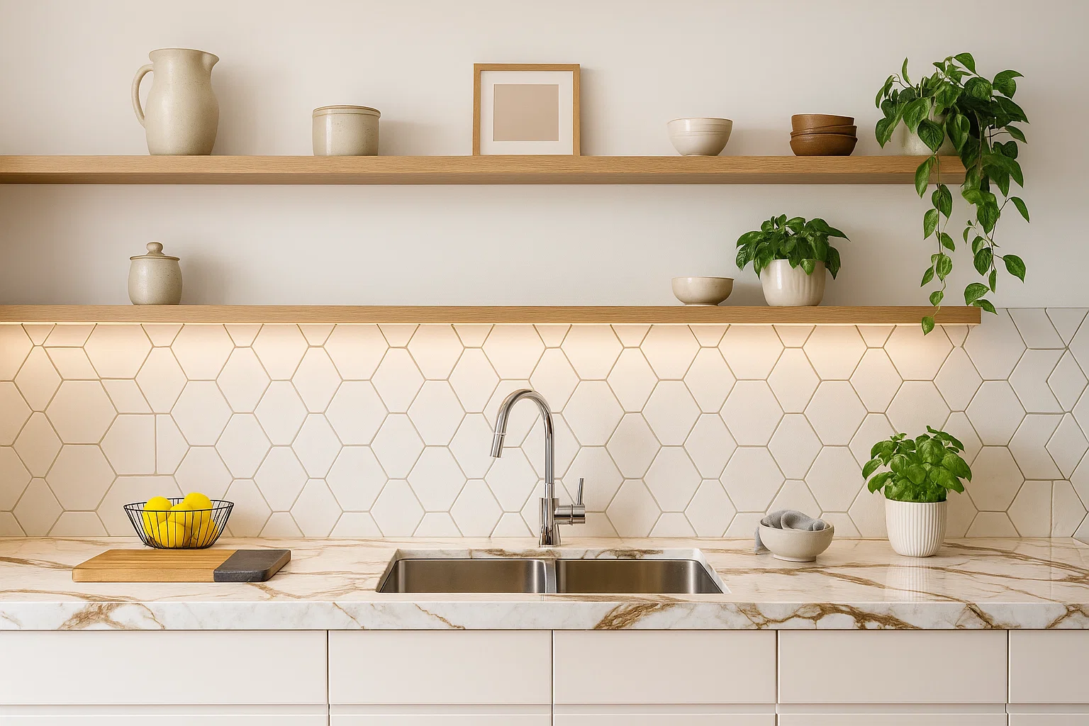 Wir erstellen gerne ein Angebot für Küchenrückwände aus großformatiger Keramik. Ihre Wände sehen dadurch sehr modern aus und sind leicht zu reinigen. - Integrierte Spülbecken aus Keramik