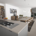 Eine tolle Idee ist es, Tischplatten oder sogar einen ganzen Tisch aus der gleichen Keramik wie die Küchenarbeitsplatte und Küchenrückwände zu bestellen.
