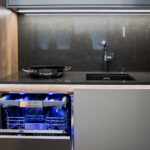 Bei der Bestellung der Keramikarbeitsplatte kann man in Erwägung ziehen, Abtropffrillen oder eine Abtropffläche direkt neben der Spüle zu integrieren. So läuft das Wasser von Geschirr direkt in die Spüle ab. - Arbeitsplattenstöße