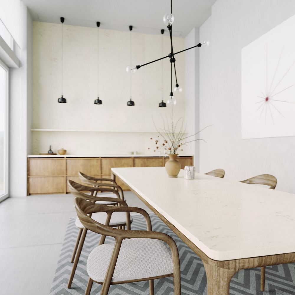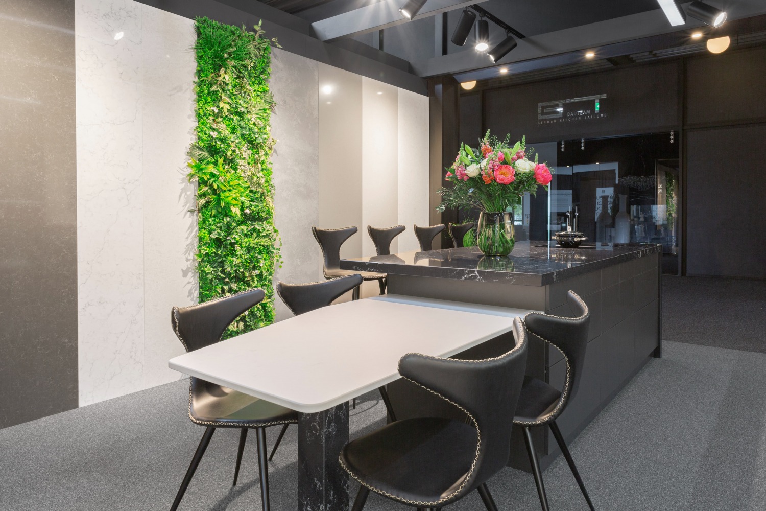 Eine tolle Idee ist es, Tischplatten oder sogar einen ganzen Tisch aus der gleichen Keramik wie die Küchenarbeitsplatte und Küchenrückwände zu bestellen.