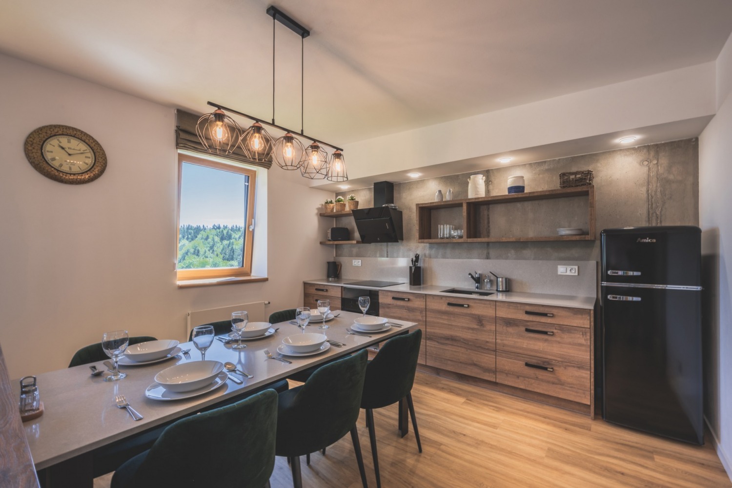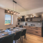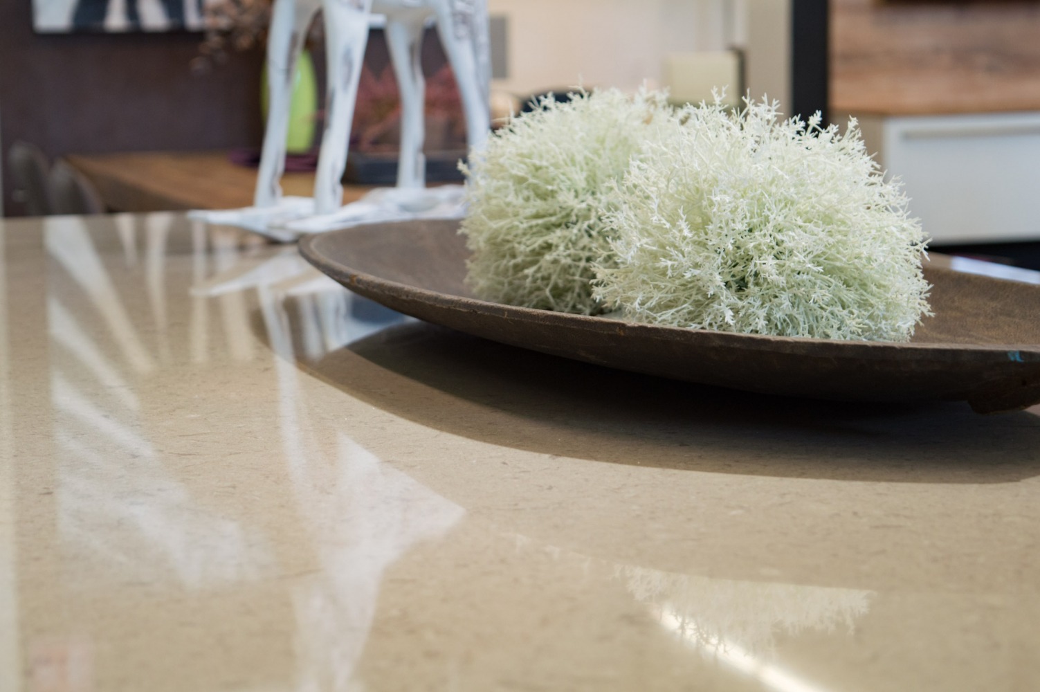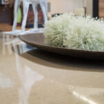 Eine tolle Idee ist es, Tischplatten oder sogar einen ganzen Tisch aus der gleichen Keramik wie die Küchenarbeitsplatte und Küchenrückwände zu bestellen.