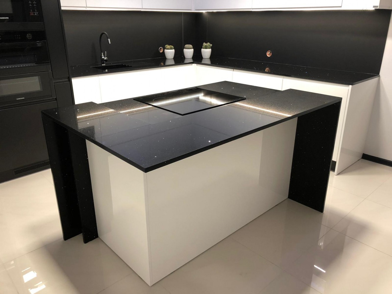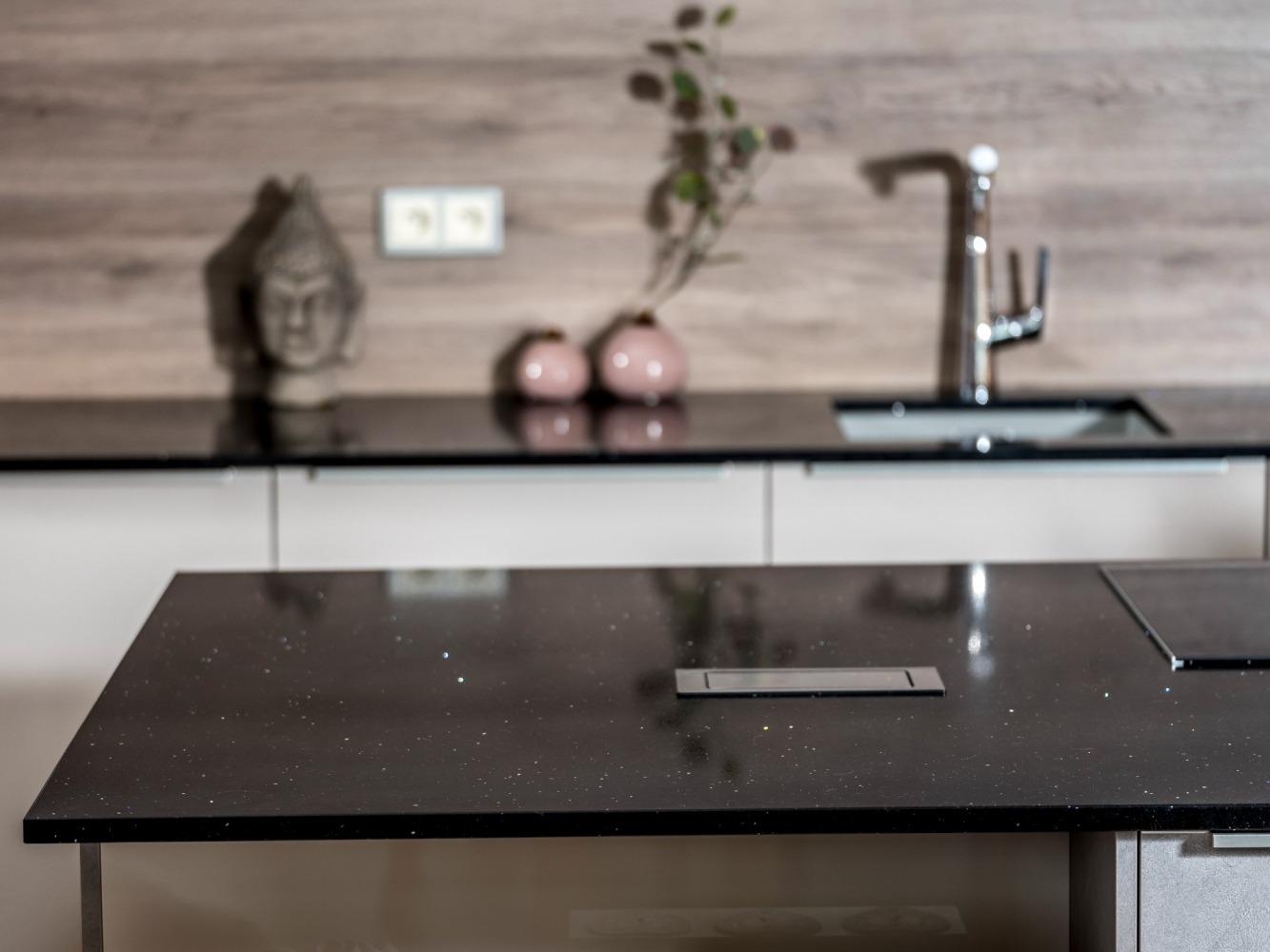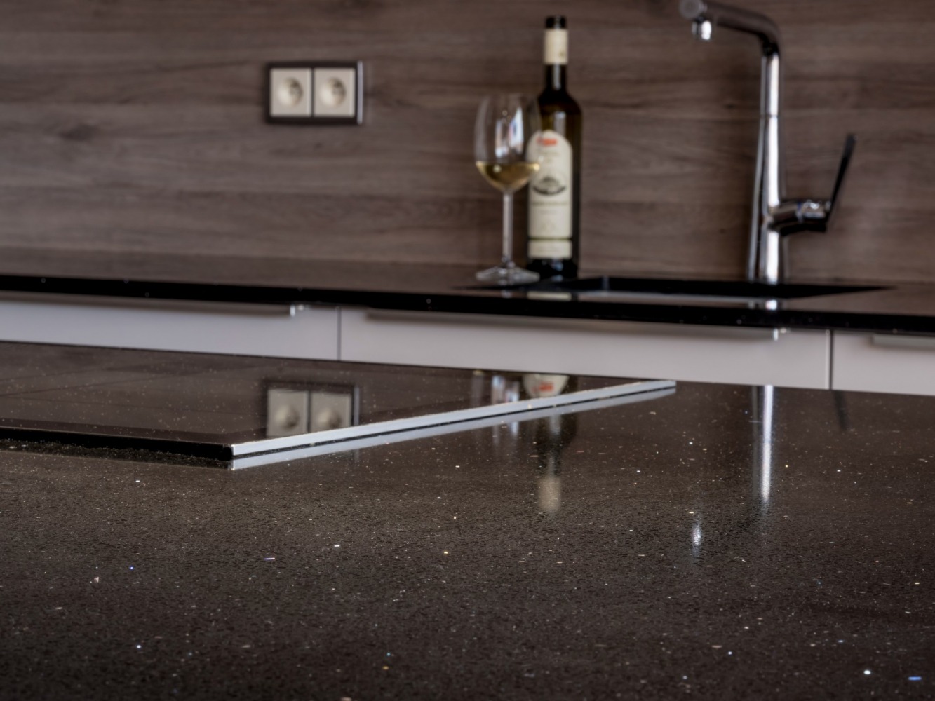 Küchenarbeitsplatte aus Konglomerat nach Maß, Schwarz – Technistone Starlight Black - poliert