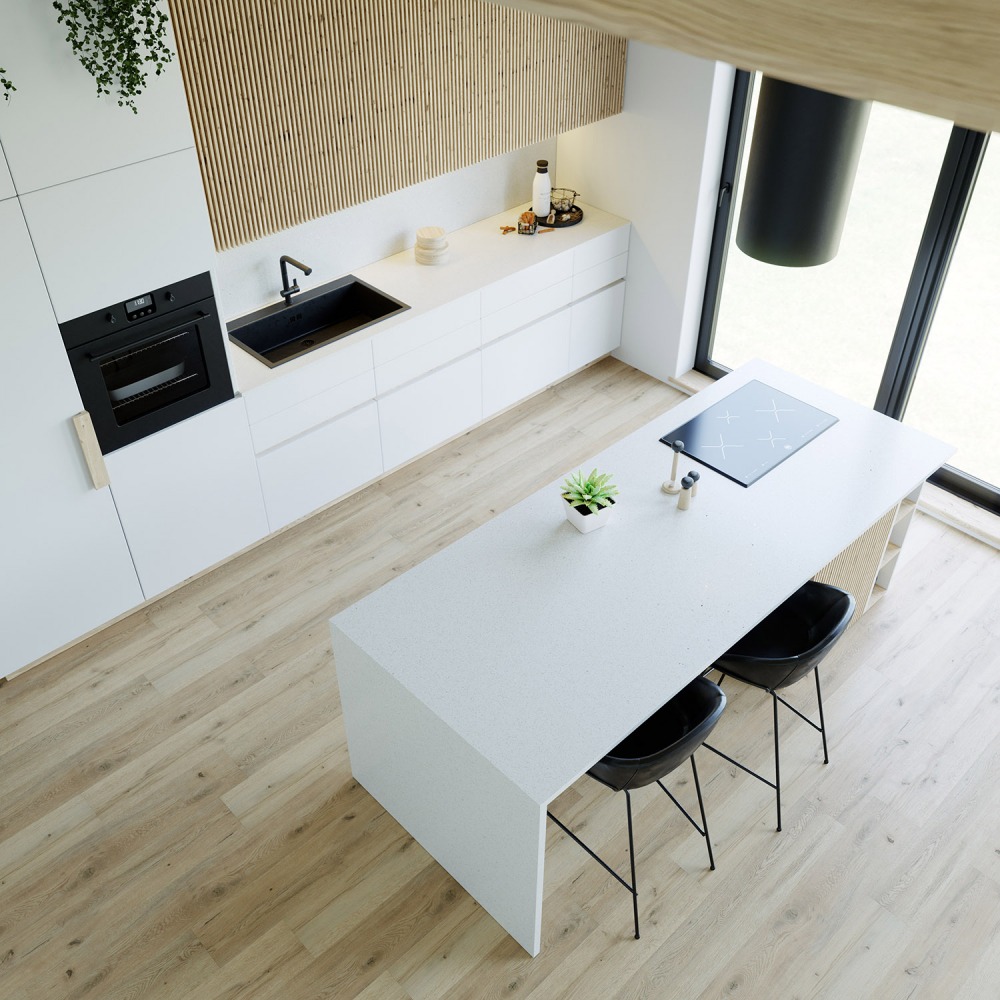 Küchenarbeitsplatte aus Konglomerat nach Maß, Weiß – Technistone Starlight White - matt