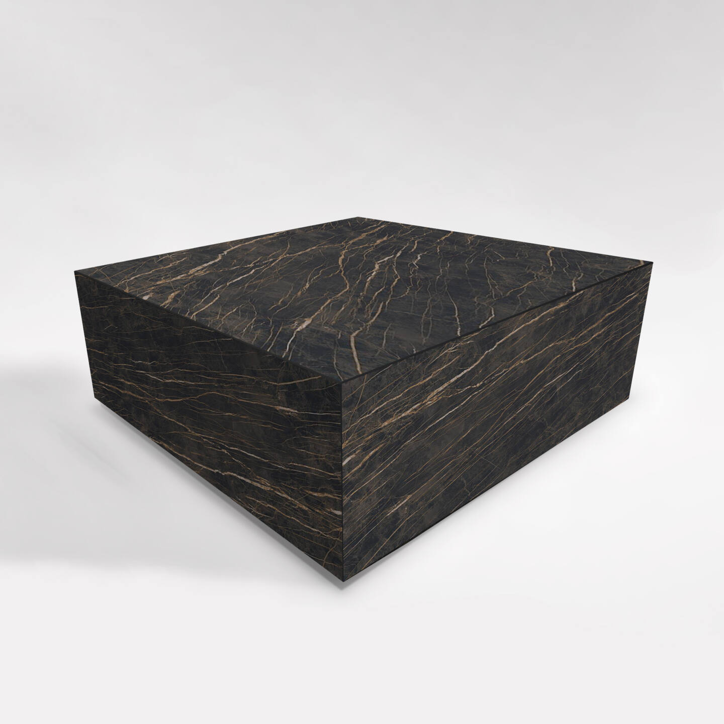 Ein moderner Kaffeetisch in Form eines rechteckigen Monolithen, der vollständig aus Franko Keramik Noir Desir besteht. Die Oberfläche des Monolithen ist nicht absorbierend, absolut widerstandsfähig gegen Schmutz, Kratzer und Temperaturschocks. Der Kaffetisch ist UV-beständig. Eine Oberfläche mit lebenslanger Farbechtheit. Der Tisch wurde vollständig in EU hergstellt aus Komponenten hergestellt, die aus EU-Ländern kommen.