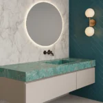 Das Badezimmer Ihrer Träume ist nicht nur eine schöne Waschtischplatte, sondern auch Wand- und Bodenverkleidungen aus großformatigen Keramikplatten oder Naturstein. Der Einsatz von großformatigen Keramikplatten sorgt dafür, dass das Bad nahezu fugenlos und sehr pflegeleicht ist. Besonders schön wirken die Keramikplatten im Bereich der Dusche und der Badewanne. In der Dusche plant man häufig Nischen oder kleine Ablagen für Kosmetikprodukte. Das gesamte Badezimmer sieht einfach fantastisch aus.