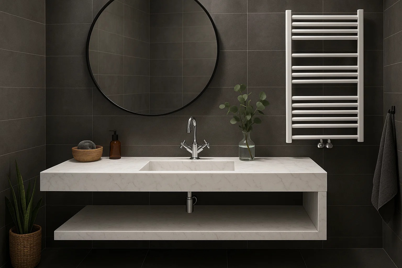 Im Gegensatz zu den meisten am Markt verfügbaren Lösungen sind unsere monolithischen Waschtischplatten vollständig aus Keramik gefertigt und rundum perfekt ausgearbeitet – auch auf der Unterseite. Gerade bei wandhängenden Lösungen, bei denen jedes Detail sichtbar bleibt, ist diese Qualität entscheidend. Die durchgängige Keramikoberfläche sorgt für eine makellose Optik aus jeder Perspektive und unterstreicht den hochwertigen, monolithischen Charakter des Produkts. Diese kompromisslose Verarbeitung bis ins kleinste Detail ist Ausdruck unseres Qualitätsanspruchs und hebt unsere Lösungen klar von denen der Konkurrenz ab.