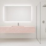 Das Badezimmer Ihrer Träume ist nicht nur eine schöne Waschtischplatte, sondern auch Wand- und Bodenverkleidungen aus großformatigen Keramikplatten oder Naturstein. Der Einsatz von großformatigen Keramikplatten sorgt dafür, dass das Bad nahezu fugenlos und sehr pflegeleicht ist. Besonders schön wirken die Keramikplatten im Bereich der Dusche und der Badewanne. In der Dusche plant man häufig Nischen oder kleine Ablagen für Kosmetikprodukte. Das gesamte Badezimmer sieht einfach fantastisch aus.