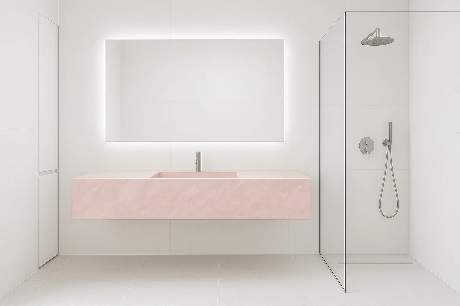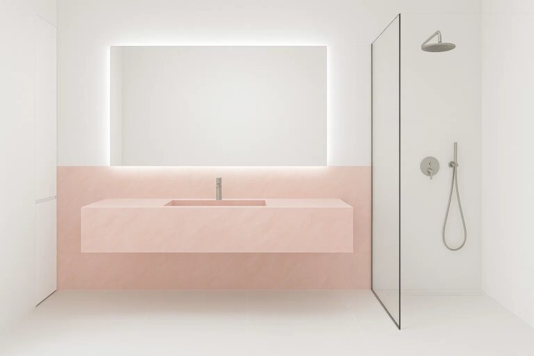 Das Badezimmer Ihrer Träume ist nicht nur eine schöne Waschtischplatte, sondern auch Wand- und Bodenverkleidungen aus großformatigen Keramikplatten oder Naturstein. Der Einsatz von großformatigen Keramikplatten sorgt dafür, dass das Bad nahezu fugenlos und sehr pflegeleicht ist. Besonders schön wirken die Keramikplatten im Bereich der Dusche und der Badewanne. In der Dusche plant man häufig Nischen oder kleine Ablagen für Kosmetikprodukte. Das gesamte Badezimmer sieht einfach fantastisch aus.